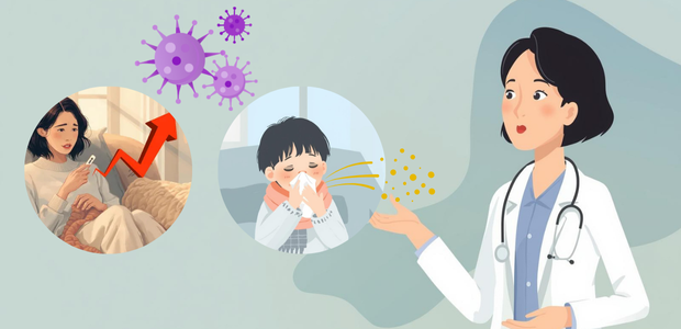 主な症状は、発熱、鼻水、咳、全身のだるさなどで、軽い風邪のように始まることが多い一方、乳幼児や高齢者では重い肺炎や気管支炎に進行することがあります。