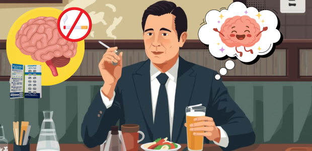 そこでチャンピックスは、受容体に「少しだけ」作用するように設計されています。この弱い刺激によって、脳はある程度の満足感を保つことができ、禁煙中に起こりやすいイライラなどの症状が軽くなります。