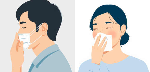 咳エチケットとは、咳やくしゃみによって飛び散る飛沫(ひまつ)に含まれる病原体を周囲に広げないための基本的な配慮行動です。