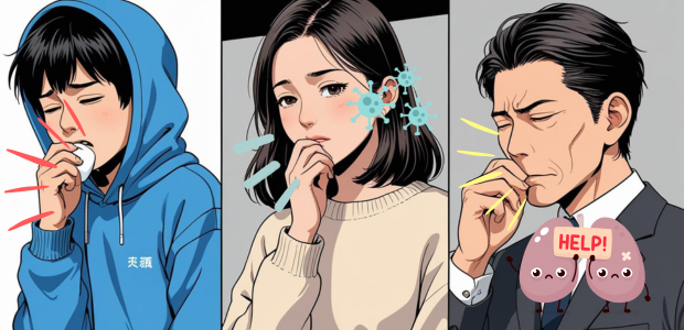 「息を吸うと咳が出る」という症状は、単なる風邪よりも、こうした慢性疾患で繰り返し見られることが多いのです。