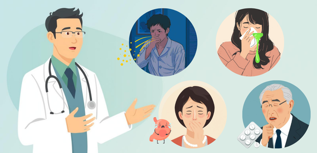 これらの咳は、市販の咳止め薬や風邪薬では改善せず、長引くことが多いです。