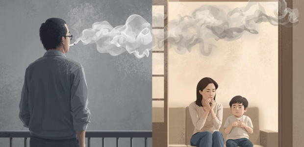 「家ではベランダで吸うから大丈夫」と思っていても、服や髪に付着した煙の粒子が室内に戻り、家族の呼吸器を刺激することがあります。
