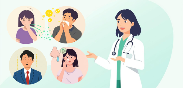 季節性のアレルギー性鼻炎の一種で、花粉を吸い込むことで免疫反応が起こります。主な症状はくしゃみや鼻水、目のかゆみですが、鼻や喉の粘膜が刺激されることで咳が出ることもあります。