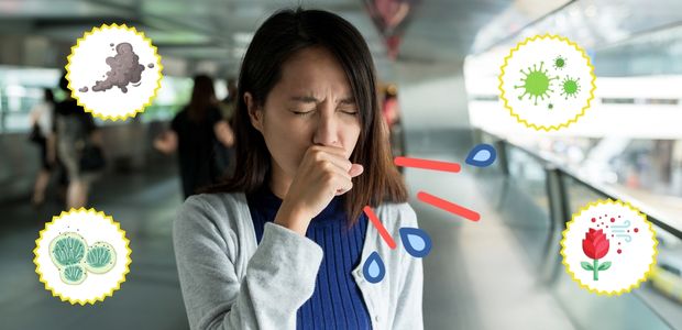 空気中にはウイルスや細菌などの病原体のほか、花粉やホコリ、カビといった異物が漂っているのですが、これらは呼吸とともに体内に入り込んできます。