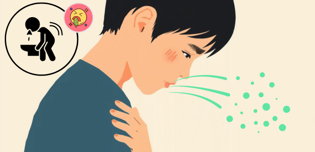 まず、嘔吐は咳の直後に起こることが多いです。激しく咳き込んだあと、急に吐いてしまうことがあり、吐く前に強い吐き気が長く続くことはあまりありません。