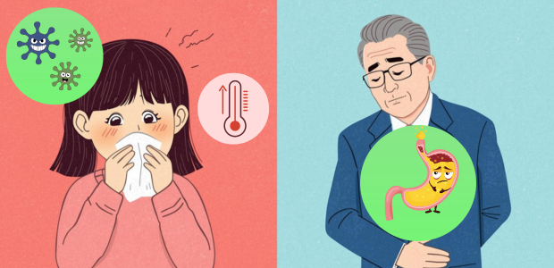 胃酸や胃内容物が食道に逆流し、その刺激によって咳が出ます。また、咳が逆流を悪化させ、嘔吐につながることがあります。