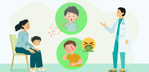 咳と嘔吐が同時にみられると、「胃腸炎ではないか」と考えがちですが、必ずしもそうとは限りません。実際には、激しい咳や呼吸器の病気がきっかけで嘔吐が起こるケースも多いです。