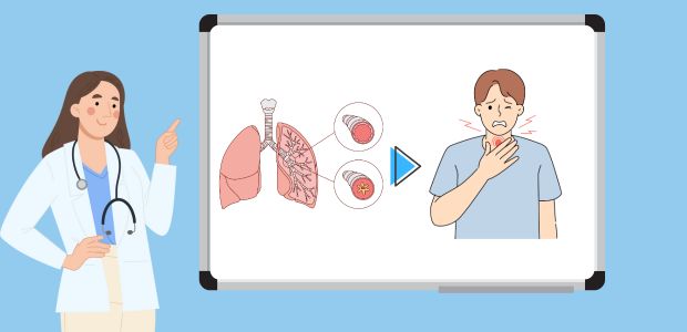 喘息とは、気道に慢性的な炎症が起きて狭くなり、呼吸がしにくくなる病気です。