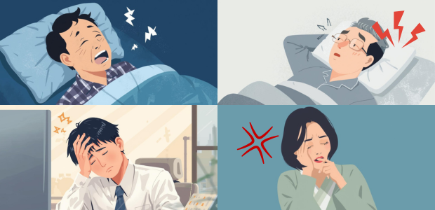 睡眠時無呼吸症候群により睡眠の質が低下すると、夜間の症状だけでなく、日中の体調にもさまざまな影響が現れます。