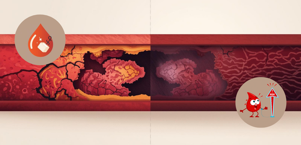高血糖はこの内皮を傷つけて血管をもろくし、さらに高血圧による圧力が加わると傷が深まり、プラーク(血管のコブ)ができやすくなります。