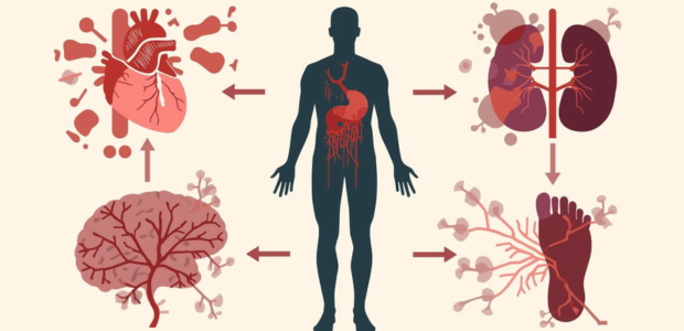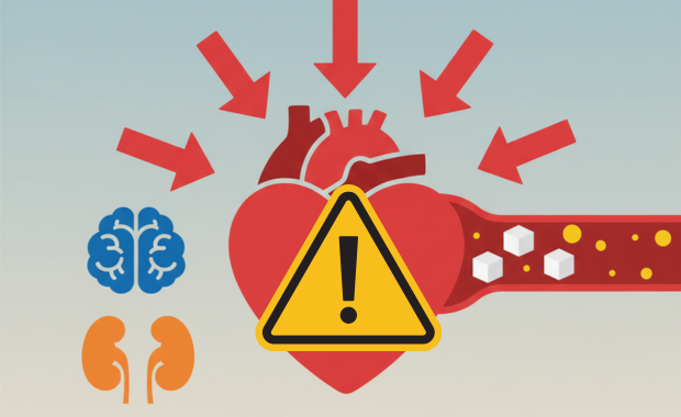糖尿病と高血圧が同時にあると、心臓・脳・腎臓・目・神経など、全身のさまざまな臓器に障害が起こりやすくなります。